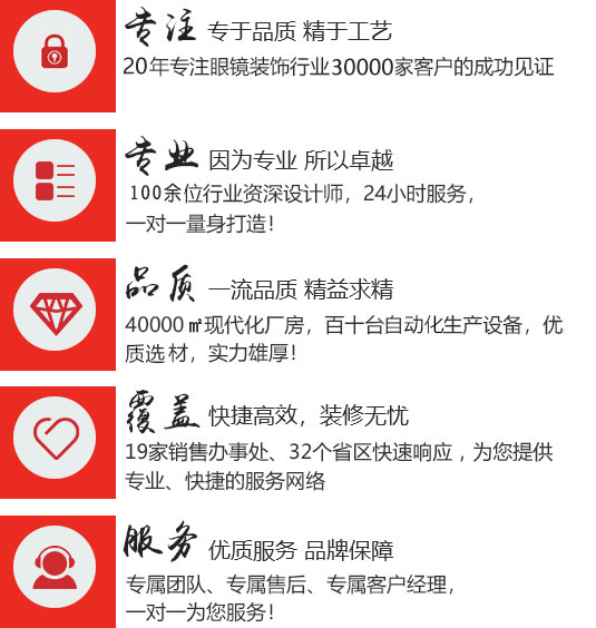 陽光視線是一家集設(shè)計(jì)、研發(fā)、生產(chǎn)、安裝、施工為一體的綜合性企業(yè)!20年專注服務(wù)于眼鏡行業(yè),擁有19個(gè)銷售網(wǎng)點(diǎn),遍布32個(gè)省份;500多名員工,其中設(shè)計(jì)研發(fā)、工程安裝、管理、營銷、等中高級執(zhí)行人才160余名;2000平米的辦公環(huán)境;公司研發(fā)能力強(qiáng),并能迅速將研發(fā)成果轉(zhuǎn)化為生產(chǎn)與商業(yè)效益;擁有超具規(guī)模的展柜生產(chǎn)基地、生產(chǎn)流程、工藝技術(shù)以及生產(chǎn)設(shè)備。